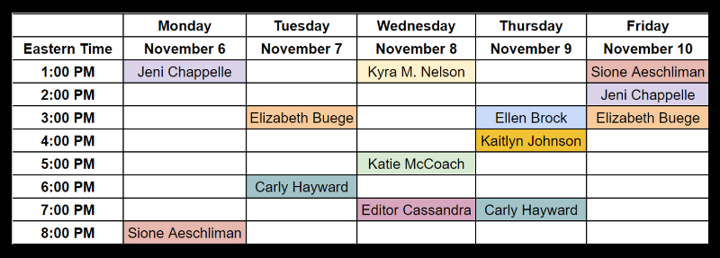 Check back periodically for updates to the schedule